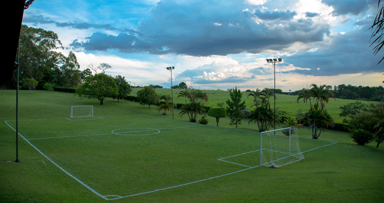 Participe de jogos e atividades em nosso campo de futebol com gramado natural.
