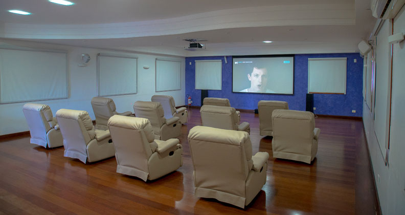 Com poltronas super confortáveis, assista programações em um telão em uma experiência similar ao cinema.