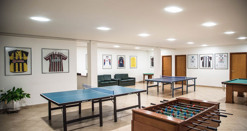 Várias atividades disponíveis na sala de jogos, onde conta com elementos de decoração.